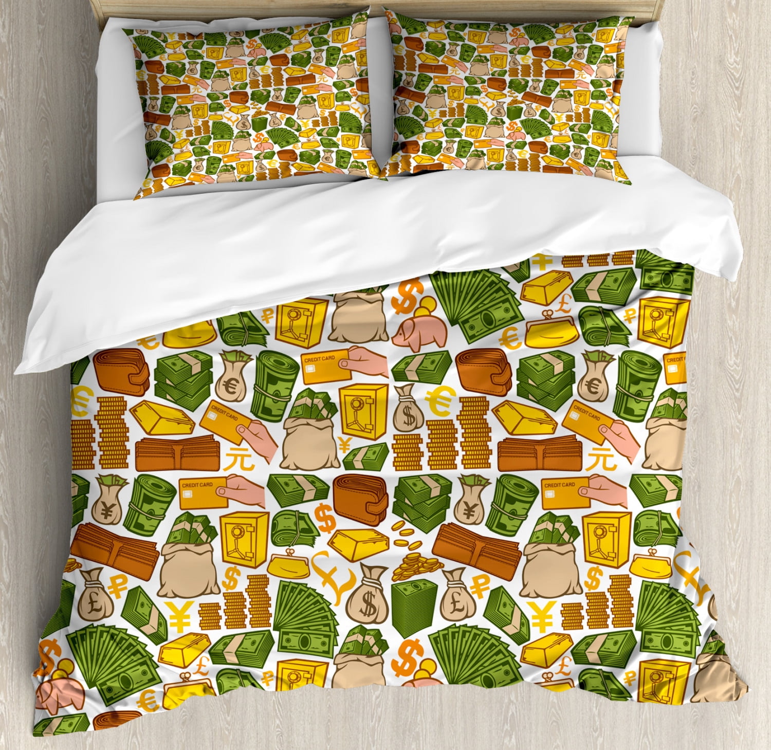 Money King Size Duvet Cover Set Colorful Symbols Of Richness Wallet Credit Card Icons Of Money Dollar Pound Signs Decorative 3 Piece Bedding Set With 2 Pillow Shams Multicolor By Ambesonne Walmart Com